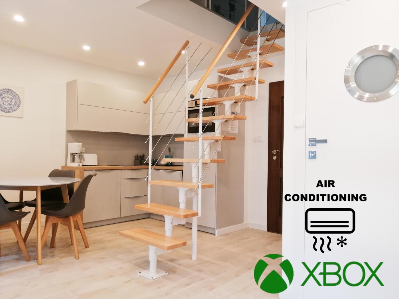 Apartament dwupoziomowy. Guests will have a special experience as the apartment features a pool with a view. This air-conditioned apartment consists of 1 living room, 2 separate bedrooms and 1 bathroom with a walk-in shower. In the fully equipped kitchen, guests will find a stovetop, a refrigerator, a dishwasher and kitchenware. Featuring a terrace with garden views, this apartment also provides a washing machine and a flat-screen TV with cable channels. The unit offers 4 beds. Apartament - 6 osobowy. Powierzchnia pokoju ok.: 52 mkw.