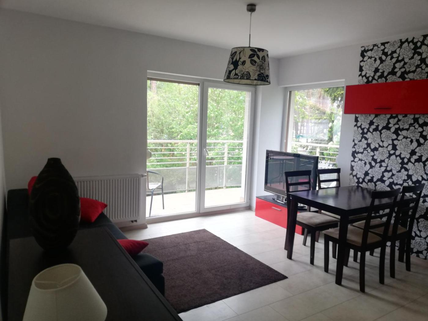 Apartament z 1 sypialnią. Boasting a private entrance, this apartment comes with 1 living room, 1 separate bedroom and 1 bathroom with a walk-in shower and a hairdryer. Guests can make meals in the kitchen that features a stovetop, a refrigerator and kitchenware. Featuring a terrace with garden views, this apartment also features a coffee machine and a flat-screen TV. The unit has 2 beds. Apartament - 5 osobowy. Powierzchnia pokoju ok.: 38 mkw.
